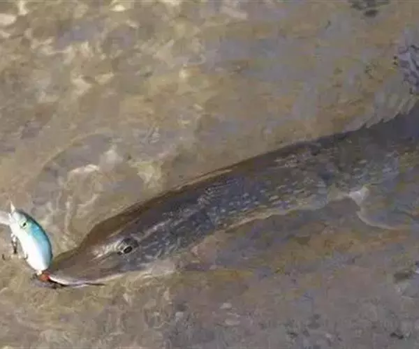 黑斑狗鱼 大型淡水鱼类。一般体长在600毫米左右,体重在1000-2000克,最大的个体体重可达16公斤以上。