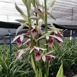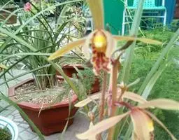 寒兰是兰科兰属的地生草本植物。茎为椭圆形;叶呈带状,尾部修长渐尖,叶脉较明显;每秆花枝开5-12朵,…