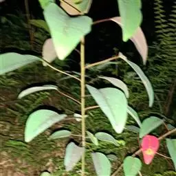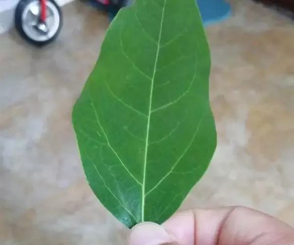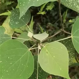 叶互生,纸质,叶片菱形、菱状卵形或稀有菱状倒卵形,长3-8厘米,宽3-9厘米,顶端骤然紧缩具长短不等的尖头,基部阔楔形或钝,全缘;中脉两面微凸起,侧脉6-10对,纤细,斜上升,离缘2-5毫米弯拱网结,网状脉明显;叶柄纤细,长2.5-6厘米,顶端具2腺体;托叶顶端钝,长约1毫米。