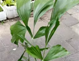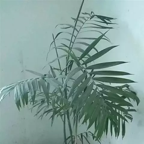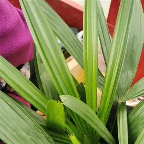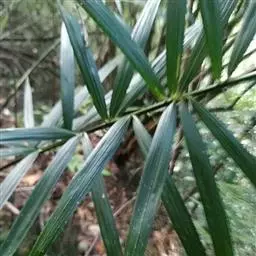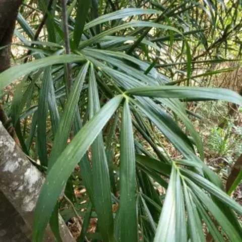 细叶棕竹,灌木,茎细如竹,多数聚生,有网状叶鞘。叶半圆形,掌状深裂,裂片狭长,阔线形,软垂,裂片7…