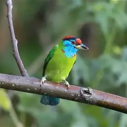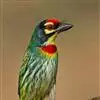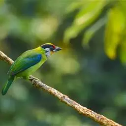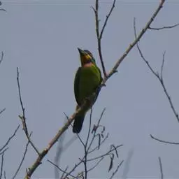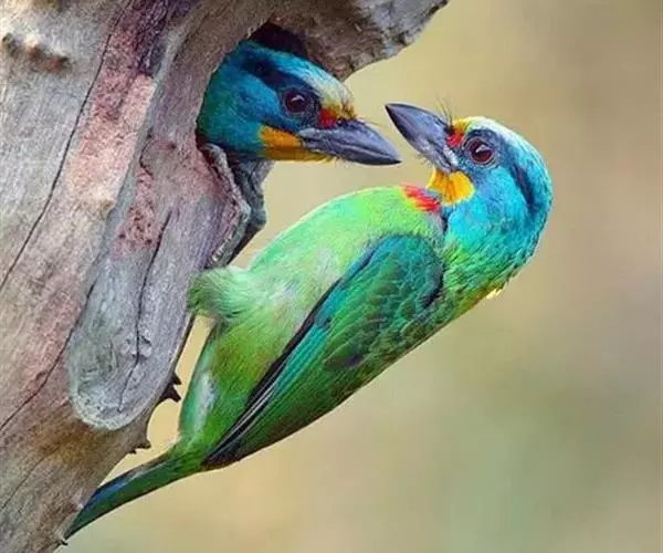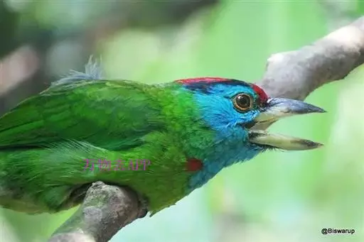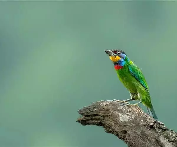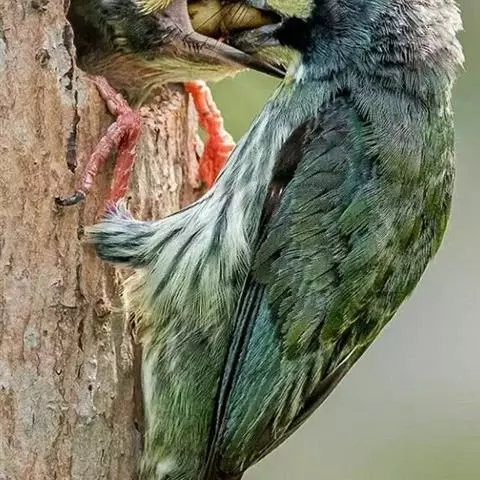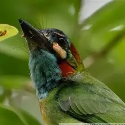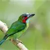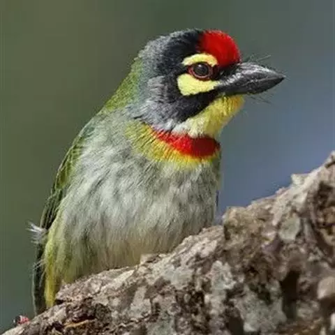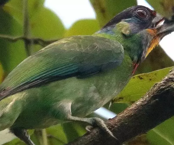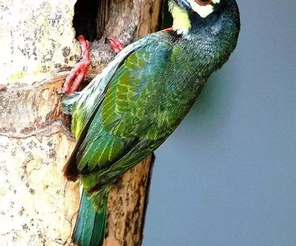 因为拥有良好的保护色,若不鸣叫很难发现它们的身影。以果实、浆果为主食,繁殖期育雏时则常以昆虫喂食幼鸟。常发出单调浑厚的“咯、咯、咯…”叫声,像极了和尚敲打木鱼的声音,加上头部参杂红、黄、蓝、绿、黑五色,所以又称为“森林里的花和尚”。繁殖期会在树干以其强而有力的嘴喙啄洞,巢筑于其内。