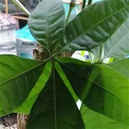 瓜栗 Walp. ),俗称发财树,木棉科小乔木,高4-5米,树冠较松散,幼枝栗褐色,无毛。小叶具…
