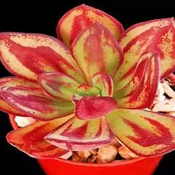 正常生长期叶片呈绿色,在光照充足、温差适宜的环境下叶片粉红至深红带紫;花茎自叶腋抽出,聚伞花序,小花橙红色,盛开在晚冬至春季。