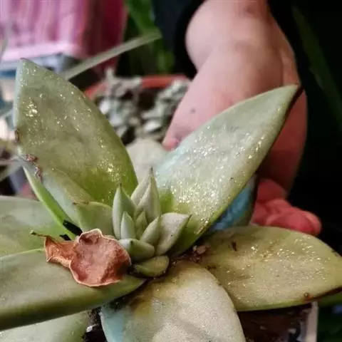 1、将景天科拟石莲花属、厚叶草属、风车草属等植物的新鲜成熟叶片左右摇晃轻轻摘取,不可破坏叶片基部生长点。