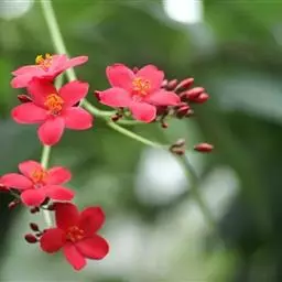 变叶珊瑚花,是大戟科麻风树属常绿灌木。变叶珊瑚花单叶互生,倒阔披针形,叶面为浓绿色,叶背为紫绿色,…