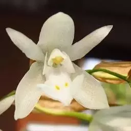 叶片两侧对生,带状, 先端渐尖,2—8枚,叶片多于花后生出,叶片长15到60厘米,对兰总花梗中空,被有白粉,顶端花2朵,对开,故称对兰,花喇叭形,花期有深秋以及春季到初夏,甚至有的品种初秋到春节开花。