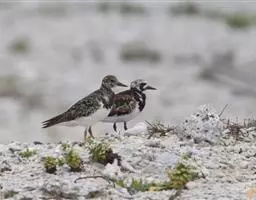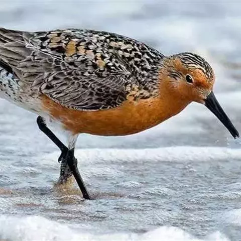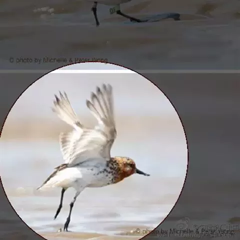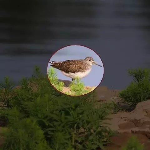 红脚鹬:体长28厘米,上体褐灰,下体白色,胸具褐色纵纹。飞行时腰部白色明显,次级飞羽具明显白色外缘。…
