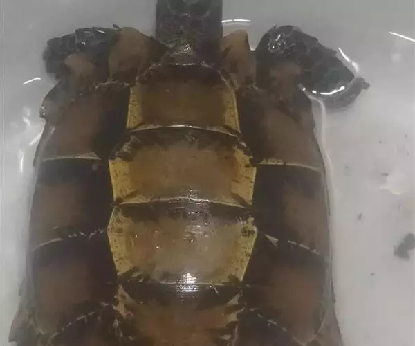 生活时,背甲黄褐色,椎盾及肋盾边缘黑褐色,常有暗色辐射斑;腹甲黄褐色,缀有暗褐色斑块或辐射线。头、四肢、尾黑褐色。