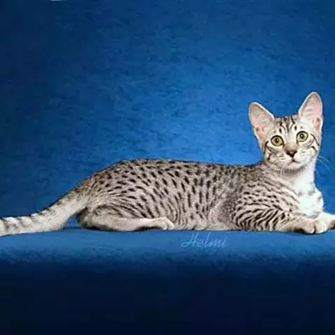 除腹部、下额的淡黄色毛以外,身上的毛都是一根毛上三种颜色,例如呈现棕色部分的毛,其根部为黑色,中段为浅色,毛尖成棕色,而呈黑色毛部分,其根部为浅色,中段为深棕,毛尖成黑色。认可棕色虎斑为品种标准色。并且成年猫,拨开被毛可见皮肤为灰蓝色。