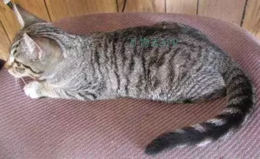 尾巴长度短于身体长度且直,粗壮有力,尾毛短,紧贴有光泽,无蓬松散乱现象。整个尾部像被深色环状分割成几段似的,尾尖端没有明显的突然变细现象。