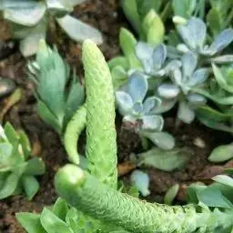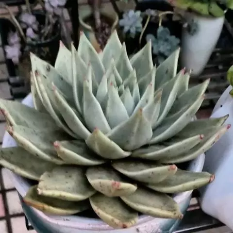 青星美人是景天科厚叶草属的多肉植物。开花时抽生出长长的花梗,簇状花序,红色花朵依次开放,呈倒钟形,…