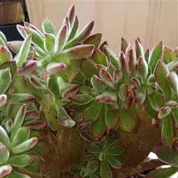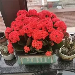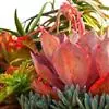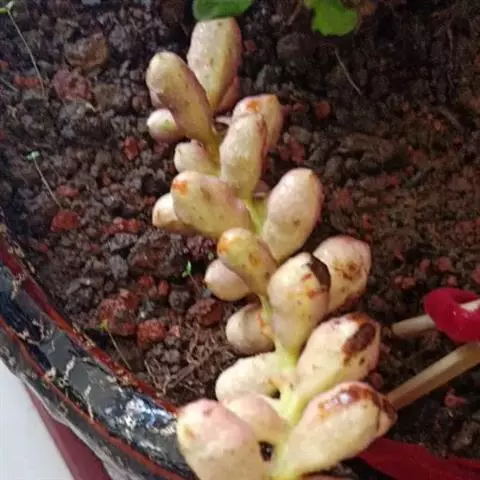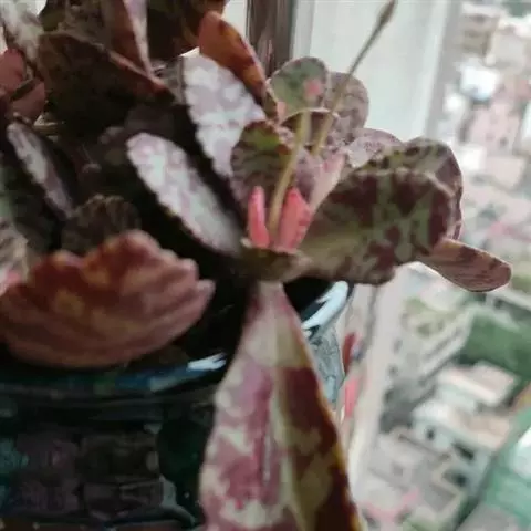 阳光充足叶片紧密排列,弱光则叶色浅绿,叶片变的细且长,不饱满,叶片间的间距会徒长拉长。红手指的花杆很高。簇状花序红色花朵,花朵钟形,串状排列,花开五瓣,非常的漂亮,初夏开花,可以异花授粉 。