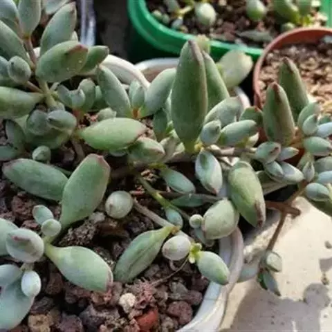 红手指是景天科叶草属(厚叶草属)多肉植物,厚叶草和景天属跨属杂交的一个品种 。
