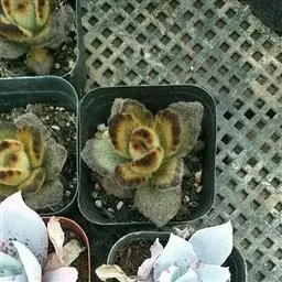 大和锦是景天科拟石莲花属的多肉植物。肉质叶排成紧密的莲座状,广卵形至散三角卵形,背面突起呈龙骨状,…