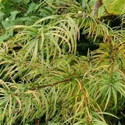小枝上面之叶近直上伸展或向前伸展,小枝下面及两侧之叶向两侧弯伸,叶棱状条形或扁四棱形,直或微弯,长0.6-1.5厘米,宽1-1.5毫米,先端尖或钝尖,横切面菱形或微扁,上(腹)面每边有白色气孔线4-7条,下(背)面每边有1-12条气孔线,稀无气孔线或有3-4条极不完整的气孔线(每条仅有极少的气孔点)。