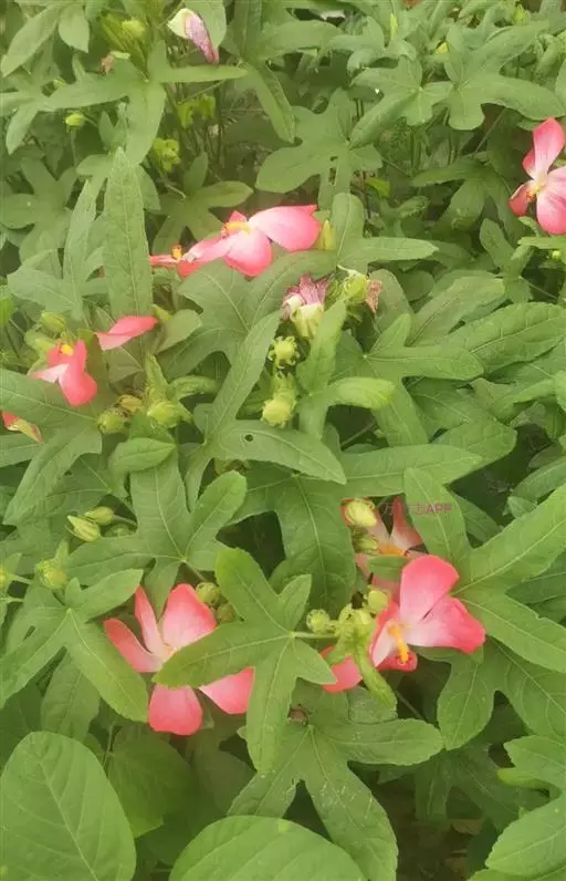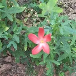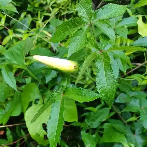 箭叶秋葵(Abelmoschus sagittifolius (Kurz) Merr.)又名五指山参、红花马宁等。锦葵科秋葵属。多年生草本,高40-100厘米,具萝卜状肉质根,小枝被糙硬长毛。蒴果椭圆形,4长约3厘米,直径约2厘米,被刺毛,具短喙;种子肾形,具腺状条纹。花期5-9月。
