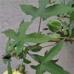 咖啡黄葵 Moench)亦称黄秋葵,是锦葵科一年生草本植物。茎圆柱形,疏生散刺。叶掌状,裂片阔至狭,…