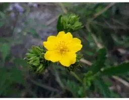 蔷薇科 ,多年生草本,全株有柔毛;匍匐茎长。小叶片倒卵形至菱状长圆形,长2-3.5(-5)厘米,宽1-3厘米;花单生于叶腋;直径1.5-2.5厘米;瘦果卵形,长约1.5毫米,光滑或具不明显突起,鲜时有光泽。花期6-8月,果期8-10月。多野生于山坡、草地上、路旁、沟边或田埂杂草中;全国各地都有分布。全草供药用,有清热解毒、活血散瘀、收敛止血作用,又能治毒蛇咬伤,敷治疔疮等;并用于杀灭蝇蛆。 [1-2]