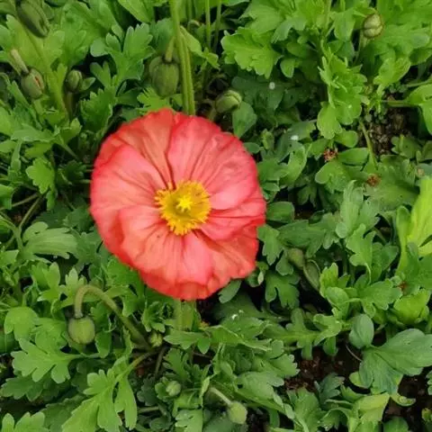 野罂粟 Banfi, Bartolucci, J.-M.Tison & Galasso)是罂粟科、高山罂粟属多年生草本植物。株高20-50厘米,具乳汁,全体被粗毛。叶生基生,具长柄;叶片轮廓卵形或长卵形、狭卵形或披针形,先端钝圆,两面疏生微硬毛。花单独顶生。萼片2,广卵形,被棕灰色硬毛,花开后脱落。花瓣4,桔黄色,倒卵形至宽倒卵形,具微波状缺刻。雄蕊多数,花丝丝状;子房具棱,柱头5-9裂。蒴果,狭倒卵形,密被视而长的硬毛,顶孔开裂。种子细小,多数。花期6-7月,果期8月。生于海拔580-3500米的林下、林缘、山坡草地。两半球的北极区及中亚和北美等地有分布。原产地俄罗斯;引入阿拉斯加、格陵兰岛和中国多地。