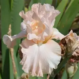 德国鸢尾,为鸢尾科鸢尾属的植物。根状茎粗壮,扁圆形,有环纹;叶绿色灰绿色,堂具白粉,…