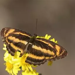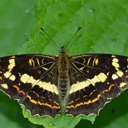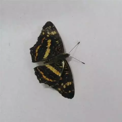 直纹蜘蛱蝶是蛱蝶科蜘蛱蝶属动物,后翅外缘呈角度,M1脉处突出,翅面有白色或黄色中横带,…