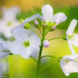 叶柄长7-10毫米;茎生叶较小,近无柄。总状花序果期伸长;花桔黄色或黄褐色,直径2-2.5厘米,芳香;花梗长4-7毫米;萼片长圆形,长6-11毫米;花瓣倒卵形,长约1.5厘米,有长爪;雄蕊6,近等长。长角果线形,长4-7.5厘米,宽3-5毫米,具扁4棱,直立,劲直。