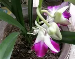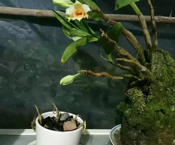 通常选用四壁多孔的塑料或陶瓷花盆,用碳根、泥炭藓、树皮块、木炭块等作盆栽材料。根据兰苗的大小,选择不同规格的花盆,但不宜用大盆栽小苗口上述栽好材料在使用前必需在清水中浸泡1天以上备用。盆底要多垫大瓦片或碎砖块,深度至盆底约1/3处,然后将兰苗放于盆中央,并在一旁插一细竹竿以固定兰苗,再填入其他栽培材料,注意根与根之间用材料隔开。