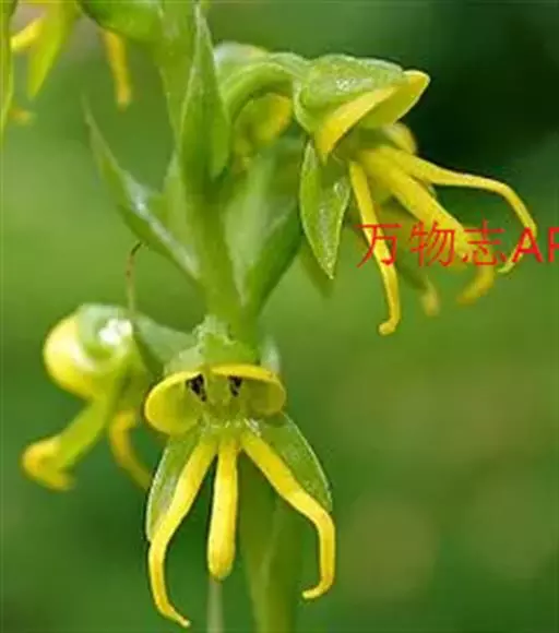 总状花序从去年或2年生具叶的茎上端发出,下垂,密生许多花,花序柄基部被2-4枚鞘;花苞片纸质,倒卵形,长1.2-1.5厘米,宽6-10毫米,先端钝,具约10条脉,干后多少席卷;花梗和子房白绿色,长2-2.5厘米;花开展,萼片和花瓣淡黄色;中萼片卵形,长1.7-2.1厘米,宽8-12毫米,先端钝,具5条脉,全缘;侧萼片卵状披针形,近等大于中萼片,先端近急尖,具5-6条脉,全缘;萼囊近球形,宽约5毫米。