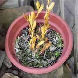 通常选用四壁多孔的塑料或陶瓷花盆,用碳根、泥炭藓、树皮块、木炭块等作盆栽材料。根据兰苗的大小,选择不同规格的花盆,但不宜用大盆栽小苗口上述栽好材料在使用前必需在清水中浸泡1天以上备用。盆底要多垫大瓦片或碎砖块,深度至盆底约1/3处,然后将兰苗放于盆中央,并在一旁插一细竹竿以固定兰苗,再填入其他栽培材料,注意根与根之间用材料隔开。