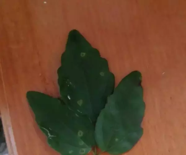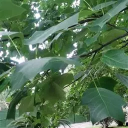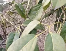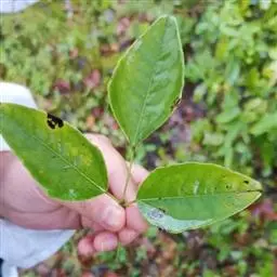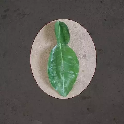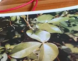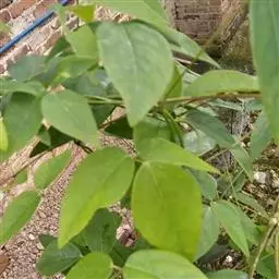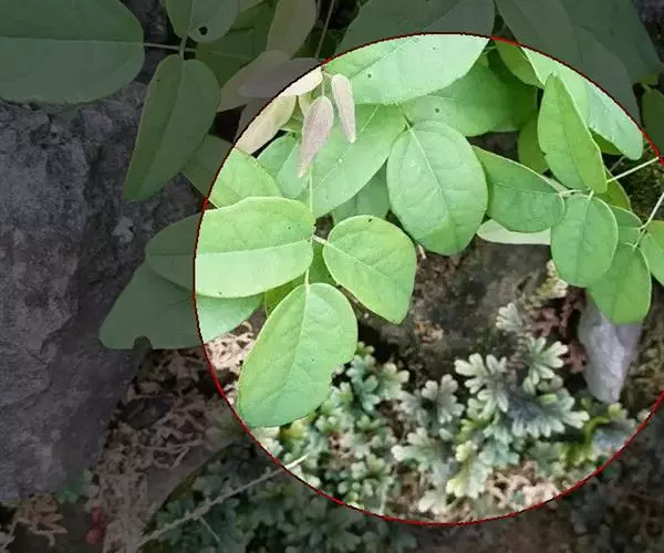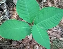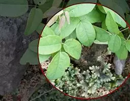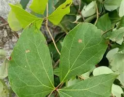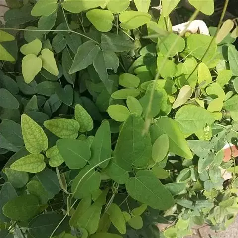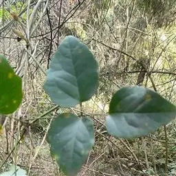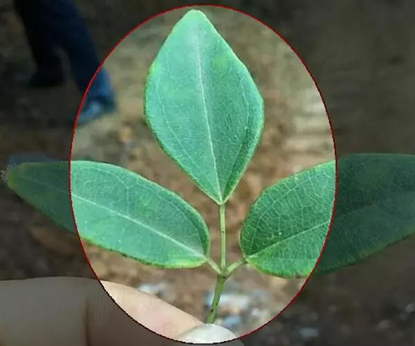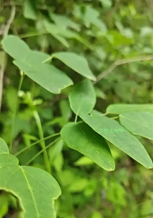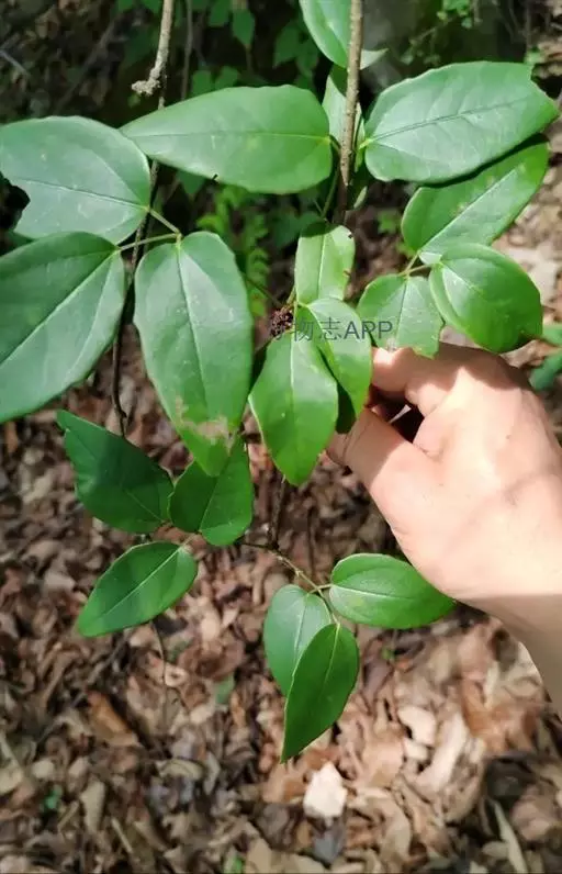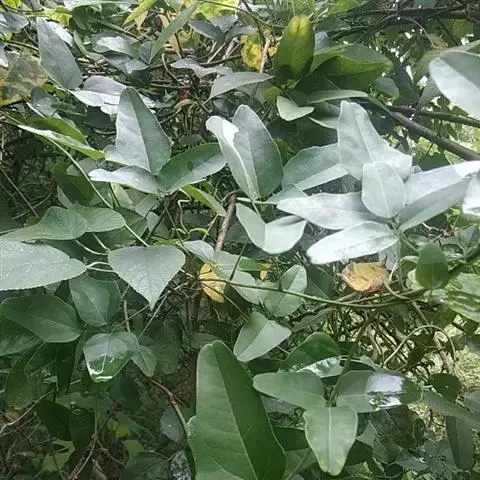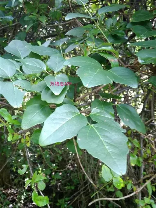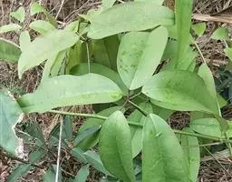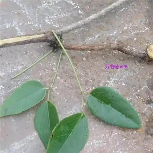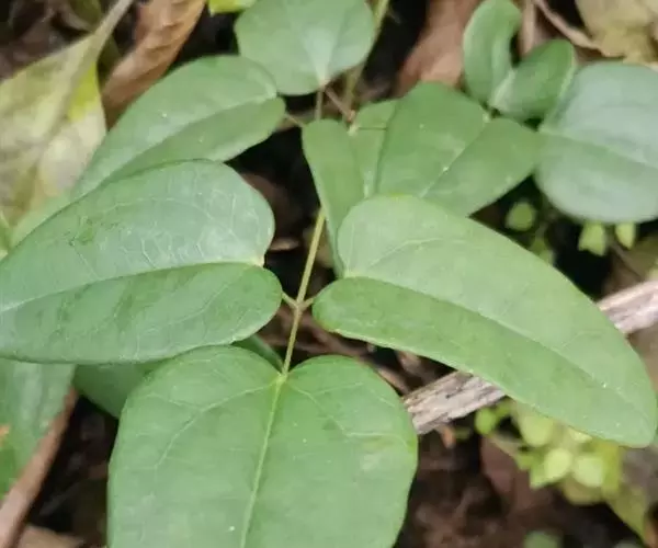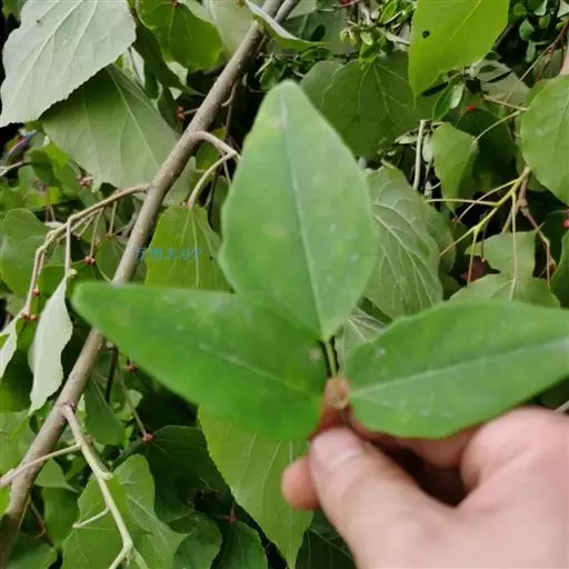 掌状复叶互生或在短枝上的簇生;叶柄直,长7-11厘米;小叶3片,纸质或薄革质,卵形至阔卵形,长4-7.5厘米,宽2-6厘米,先端通常钝或略凹入,具小凸尖,基部截平或圆形,边缘具波状齿或浅裂,上面深绿色,下面浅绿色;侧脉每边5-6条,与网脉同在两面略凸起;中央小叶柄长2-4厘米,侧生小叶柄长6-12毫米。