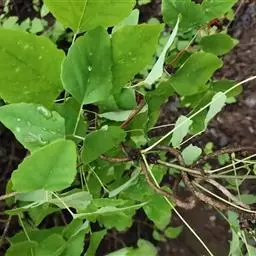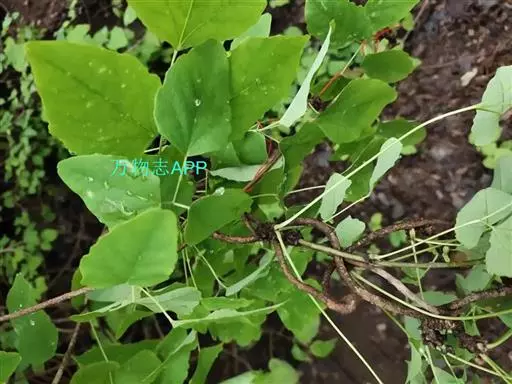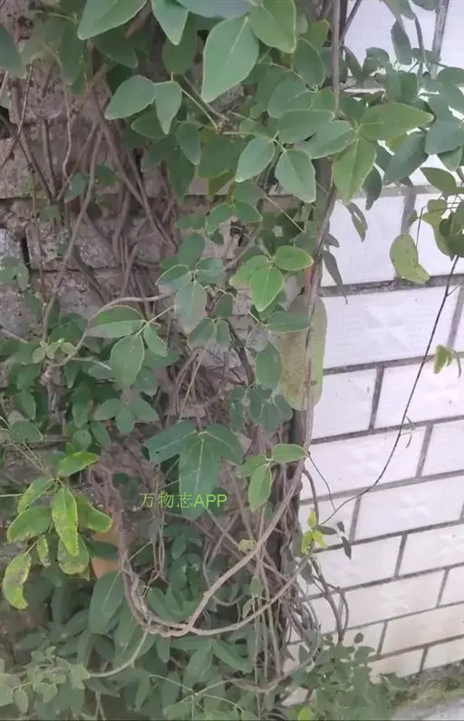 落叶木质藤本。茎皮灰褐色,有稀疏的皮孔及小疣点。