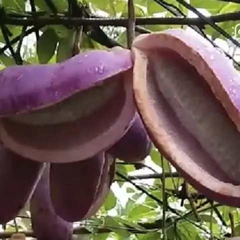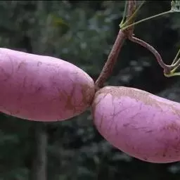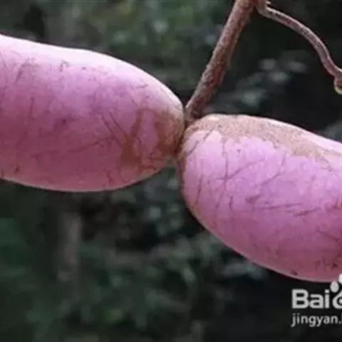 果长圆形,长6-8厘米,直径2-4厘米,直或稍弯,成熟时灰白略带淡紫色;种子极多数,扁卵形,长5-7毫米,宽4-5毫米,种皮红褐色或黑褐色,稍有光泽。花期4-5月,果期7-8月。