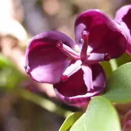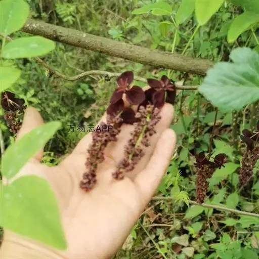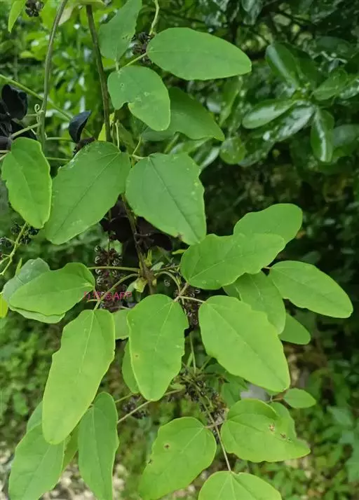 小叶革质,卵状长圆形或卵形,长4厘米-7厘米,宽1.5厘米-3(5)厘米,先端狭圆,顶微凹入而具小凸尖,基部圆、阔楔形、截平或心形,边通常全缘;有时略具少数不规则的浅缺刻。总状花序长7厘米-9厘米,腋生或生于短枝上。雄花:萼片长2毫米-3毫米,紫色;雄蕊6,离生,长约2.5毫米,红色或紫红色,干后褐色或淡褐色。雌花:直径约2厘米;萼片长9毫米-12毫米,宽7毫米-10毫米,暗紫色;心皮5-7,紫色。果长圆形,长6厘米-8厘米厘米,直径3厘米-5厘米,熟时黄褐色;种子卵形,黑褐色。花期4月-5月,果期6月-9月。