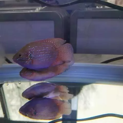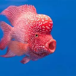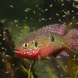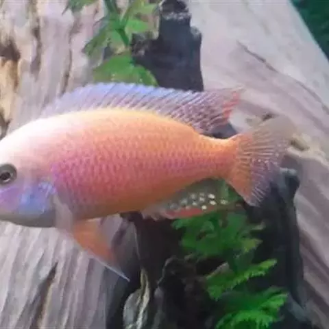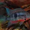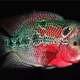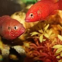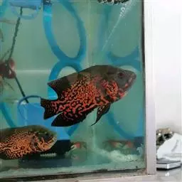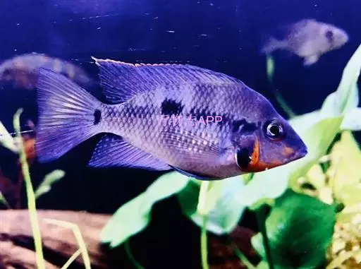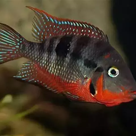 看到它在面颊下缘鲜红的色泽,就可以明白如此称呼是最恰当不过的了。属于大型的南美慈鲷,但它只是静静地停留在某一角落,守卫着属于自己的地盘,在繁殖季节到来时显得异常的暴躁凶猛,常打得别的鱼遍体鳞伤甚至致死,但由于它的遗传因子极强而固定,所以成为从事育种玩家收藏的鱼种。