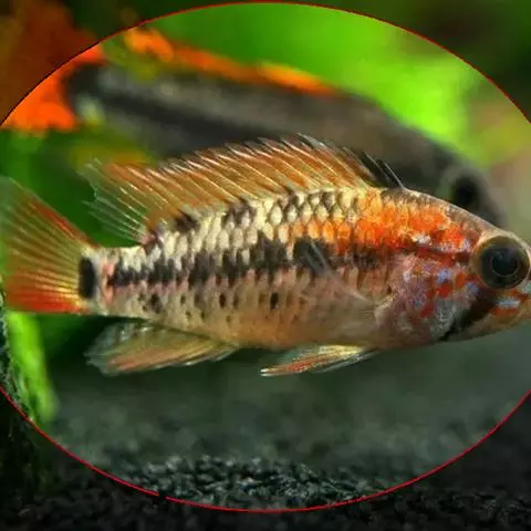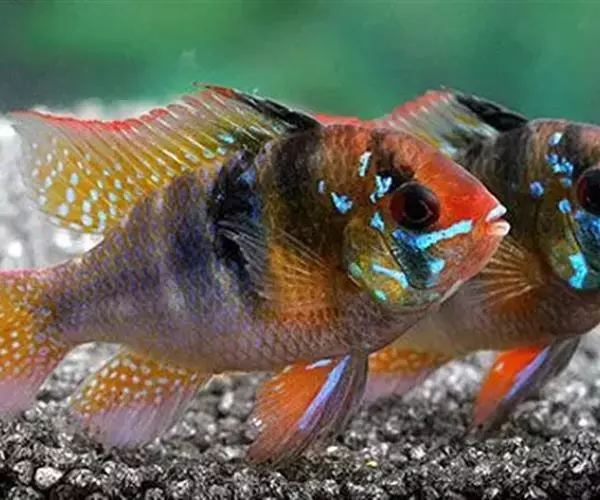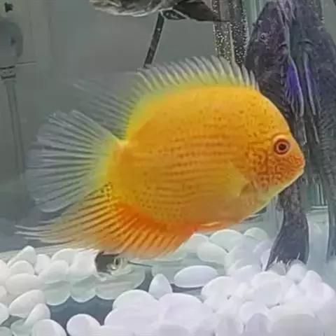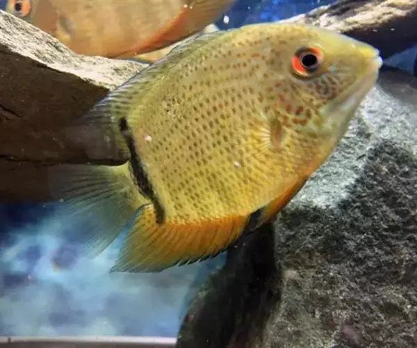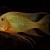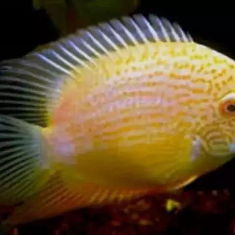 产于南美河川的中型慈鲷,线条较为浑厚而常给人一种易于亲近的感觉,在成熟的雄鱼身上会散发着如黄金般的光泽,同时在其上会出现如珍珠般绚丽的花纹,在争斗时往往会将下颚至喉部鳃后侧的薄膜鼓起,也许看似黄麒麟,所以常引起混淆,最大体长20cm,但个性尚属温和。