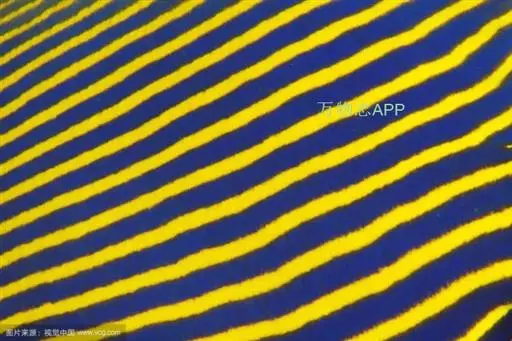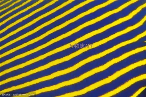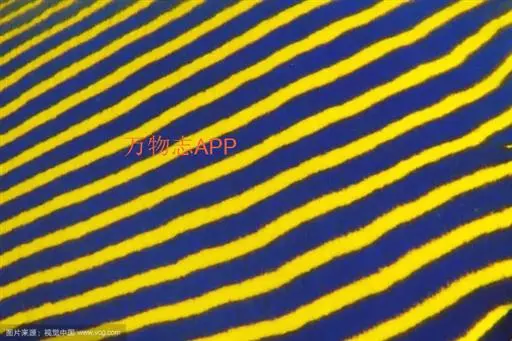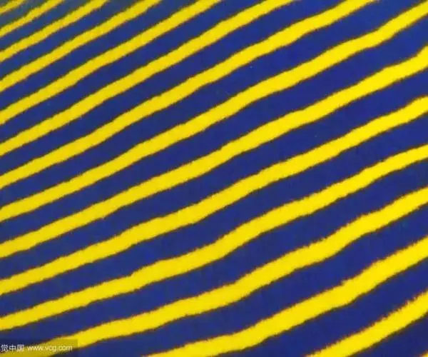 幼鱼时,体一致为橘黄色,体侧具4~6条带黑边之白色至淡青色之横带,背鳍末端具一黑色假眼;成鱼则体呈黄色,横带增至8~10条且延伸至背鳍,背鳍软条部暗蓝色,假眼已消失。由背鳍前方至眼后亦有黑边之淡青色带;臀鳍黄褐色,具数条青色弧形线条;尾鳍黄色。