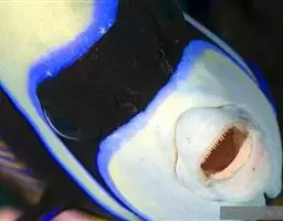 甲尻鱼与其他鱼类共生。此鱼属大Angelfish,右图第5行
