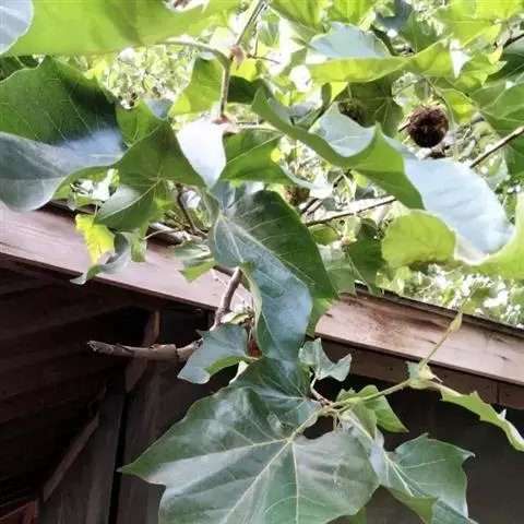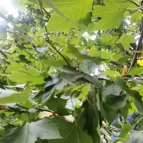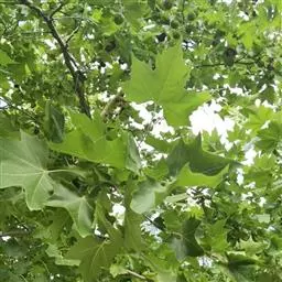 一球悬铃木(学名:Platanus occidentalis L.)是悬铃木科,悬铃木属落叶大乔木,高可达40米;树皮有浅沟,嫩枝有黄褐色绒毛被。叶片阔卵形,基部截形,阔心形,或稍呈楔形;裂片短三角形,边缘有数个粗大锯齿;掌状脉,叶柄密被绒毛;托叶较大,花单性,聚成圆球形头状花序。雄花花丝极短,花药伸长,雌花萼片短小;头状果序圆球形,单生;小坚果先端钝,基部的绒毛长为坚果之半。
