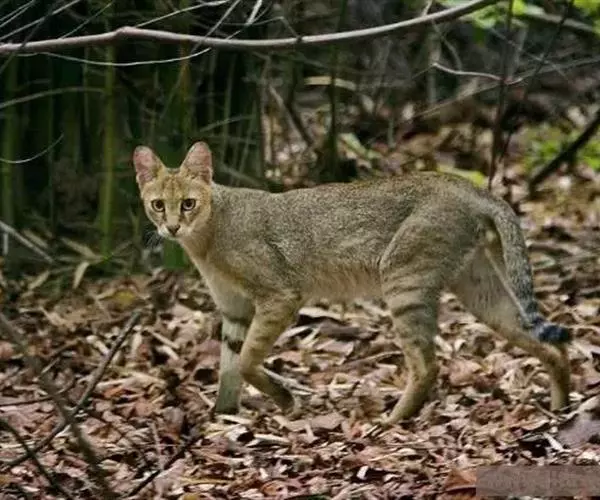 丛林猫与其他野猫相比,四肢在比例上显得较长而尾短。体背棕灰或沙黄色;耳背面呈粉红棕色,…