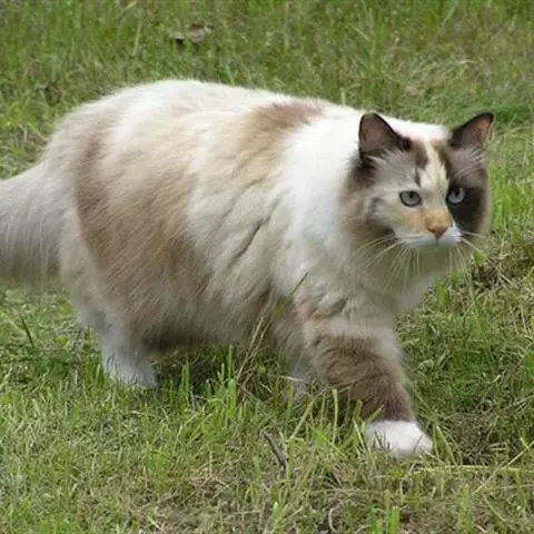 挪威森林猫是猫科猫属哺乳动物。挪威森林猫的头部从两耳根至下巴呈一个等腰三角形,鼻子中长,…