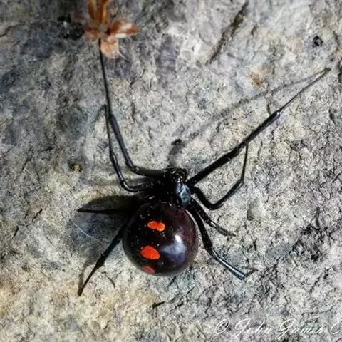 为球腹蛛科,寇蛛属。分布于世界各地的种名各异,一般蜘蛛毒性不大,咬伤后可引起局部疼痛、发炎或坏死。…