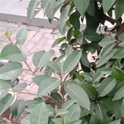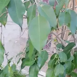 印度榕(学名:Ficus elastica Roxb. ex Hornem.):乔木,高达20-30米,胸径25-40厘米;树皮灰白色,平滑。小枝粗壮。叶厚革质,长圆形至椭圆形,全缘,表面深绿色,光亮,背面浅绿色,侧脉多,不明显,平行展出;榕果成对生于已落叶枝的叶腋,卵状长椭圆形,黄绿色,基生苞片风帽状,脱落后基部有一环状痕迹;雄花、瘿花、雌花同生于榕果内壁。瘦果卵圆形,表面有小瘤体,花柱长,宿存,柱头膨大,近头状。花期冬季。