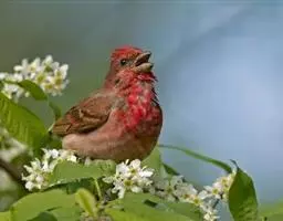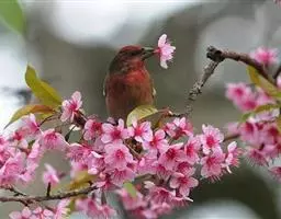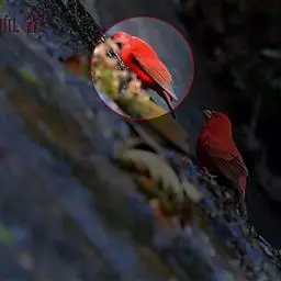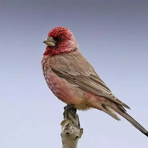 酒红朱雀小型鸟类,体长13~15厘米。雄鸟通体深红色,头部深朱红或棕红色,下背和腰玫瑰红色,…