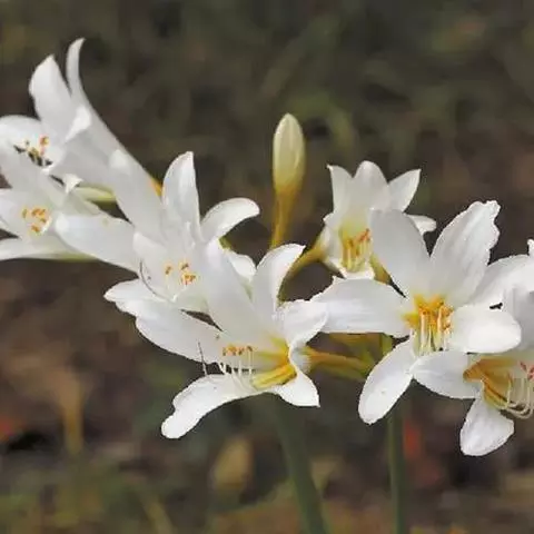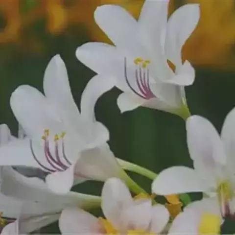 长筒石蒜草本,地生。鳞茎卵球形;叶披针形;伞形花序,有花5-7朵,花白色;花被裂片腹面稍有淡红色条纹,…