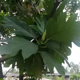 面包树 Fosberg)是桑科波罗蜜属植物。叶大,成熟之叶羽状分裂,表面深绿色,…
