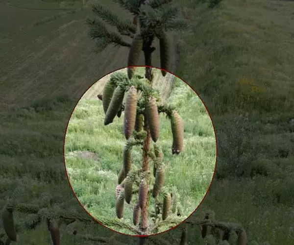 头状花序大,下垂,生枝头顶端或植株仅含1个头状花序而单生茎顶。总苞球形,直径3-6厘米,被稠密而膨松的蛛丝毛或脱毛而至稀毛。总苞片多层多数,通常13-15层,向内层渐长,有时变紫红色,外层与中层披针形,长0.7-2.3厘米,宽3-4毫米;内层绒状披针形,长2.3-2.5厘米,宽1.5-2毫米。全部苞片上部长渐尖,中外层平展或下弯,内层上部外面有稠密短糙毛。小花全部为两性,管状,花冠紫红色,长2.5厘米,细管部长9毫米,檐部长1.4厘米,花冠裂片不等大,三角形,长达3毫米。瘦果长椭圆形,浅褐色,长7毫米,宽约2毫米,顶端截形,有果缘,果缘边缘细锯齿,侧生着生面。冠毛褐色,多层,不等长,向内层渐长,长1.5-2厘米,基部连合成环,整体脱落;冠毛刚毛糙毛状。花果期6-10月。