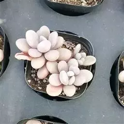丸叶姬秋丽(Graptopetalum mendozae) 以下为两者的形态区别:丸叶姬秋丽的叶片更圆润偏白;而姬秋丽的叶片则更窄小,且在温差大、光照良好的环境下相比丸叶姬秋丽更偏粉色。丸叶姬秋丽的花瓣是纯白的,而姬秋丽的花瓣上分布着或多或少的细微红点。