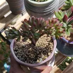 此外还可用老株旁边萌发的幼株进行扦插。扦插前需将切口晾干,再将下端茎干浅埋入沙土中。其余注意事项同叶插。扦插介质需使用疏松的沙质土壤,以便植株的根系能够良好地生长。