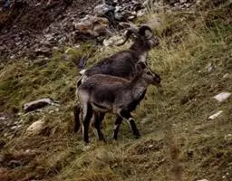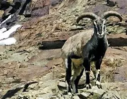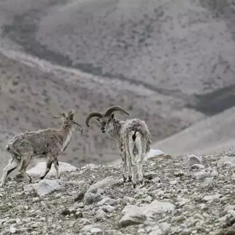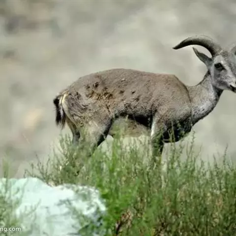 盘羊:雄性肩高可达120厘米,体重可达200千克。雄性的弯角粗大,长达1米以上,向下扭曲呈螺旋状,…