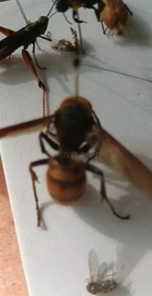 金环胡蜂是胡蜂科、胡蜂属昆虫。雌蜂体长约40毫米,工蜂体长25毫米,雌蜂体黑褐色,头部橙黄色,…